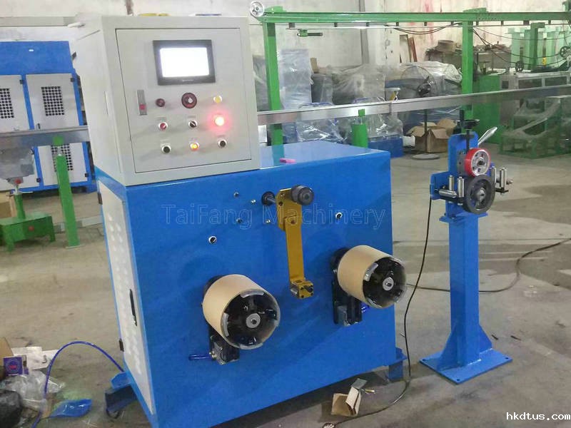机头采用免调自定心机头,配备专用储线架,引进台湾技术,结合多年的生产制造经验,经完善后,提升了打包带的生产速度,同时也解决了厚薄不匀,附着力差,张力不匀,裁断后纤维丝内缩等问题,断线次数及废品率显著降低等优点,为聚酯纤维柔性打包带生产厂家的首选设备。